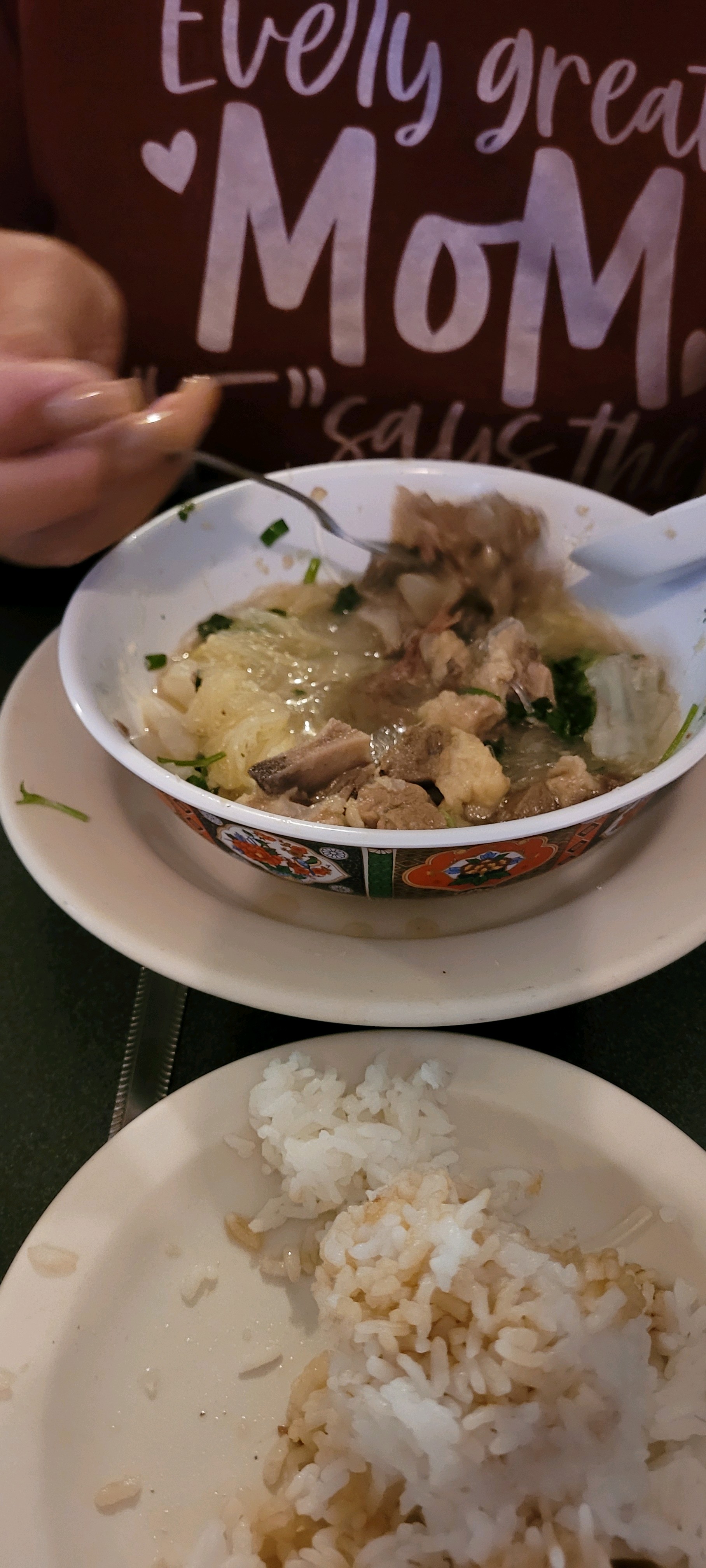This was the first time Lupe ate oxtail soup and I have to say, she loved it. This is definitely one of the oxtail soups Mom would’ve loved. Unlike the restaurants on Oahu, this oxtail soup has long rice in it. The oxtail was tender and the broth was excellent. The ginger and cilantro was fresh. There are some restaurants that give you the minced ginger from a jar, but it doesn’t taste the same – these people need to taste the oxtail soup at Tip Top.